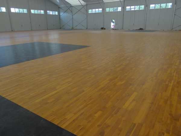 籃球館木地板的承重負荷及牢固化使用壽命必須達到比賽及訓練的要求,如活動籃球架及相關體育設施在運動木地板上移動時,運動木地板的表層和結構不能因此遭到破壞。這就是DIN標準所描述的滾動負荷標準和概念。
